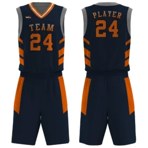 Championship-grade basketball uniform with heavy-duty fabric, metallic prints, and pro-level durability.